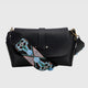 BOHO WEEKENDER BLACK GEO is a stylish and spacious handloom fabric bag with multi-color embroidery, perfect for casual outings and travel.