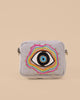 Evileye Black Sling Bag is a handcrafted sling bag made with love and care, featuring a rich black velvet base fabric adorned with intricate wool embroidery and delicate handwork.