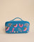 Add a splash of color and charm to your vanity with this blue embroidered makeup pouch. Featuring vibrant pink and golden bird motifs, this handcrafted pouch is the perfect mix of elegance and utility. Designed with a spacious interior, sturdy zipper closure, and an easy-carry handle, it keeps your beauty essentials safe and stylish.