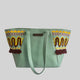 This tote bag is made of high-quality rexine material in black color with intricate multi-color embroidery, complemented by a zip closure and brushed brass hardware. The bag features two zips for added security and organization, making it perfect for everyday use.