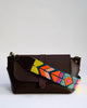SLING BAG BROWN WITH GEOPOP TEAL EMBROIDERED STRAP