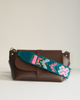 TEAL ABSTRACT STRAP SLING BAG- BROWN (WITH EMBROIDERED HANDLE)