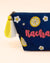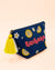 Personalised Perfection: Make it uniquely yours! The striking Navy Blue Pouch features your name (or a special word) hand-embroidered with beautiful pink beads.