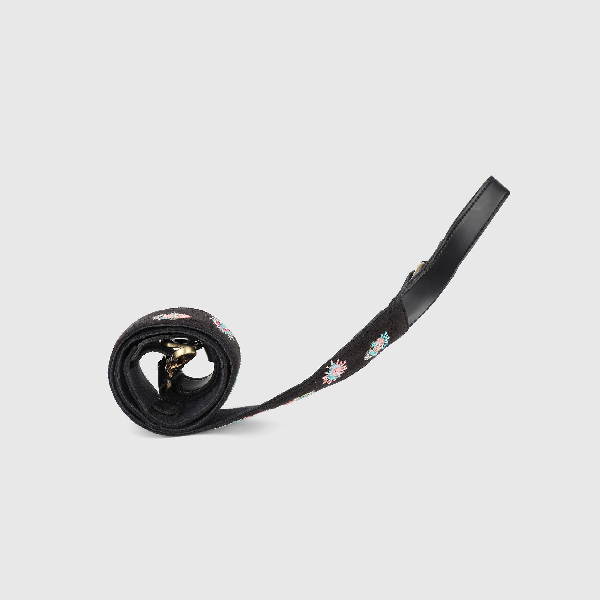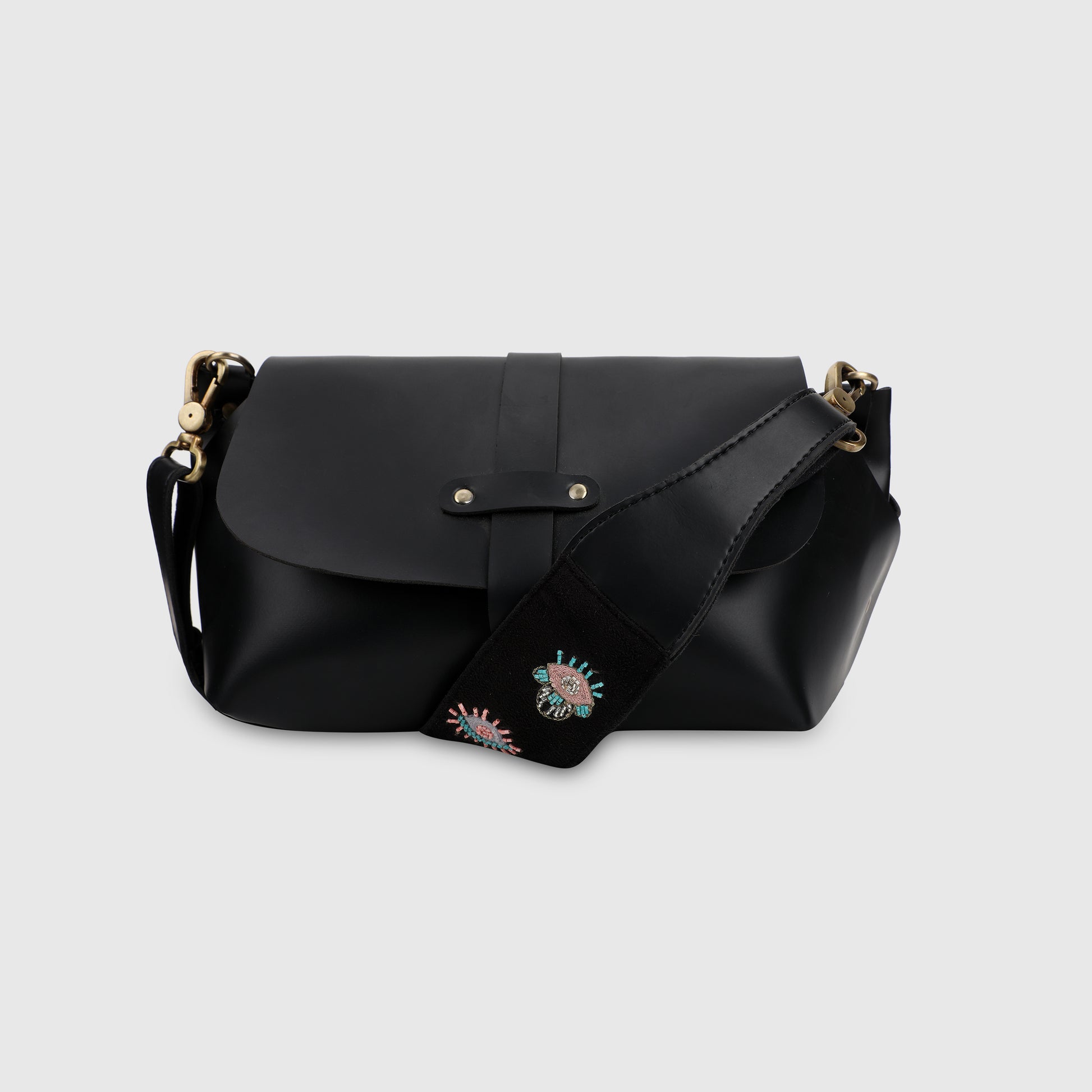 EVIL EYE STRAP SLING BAG- BLACK (WITH EMBROIDERED HANDLE)